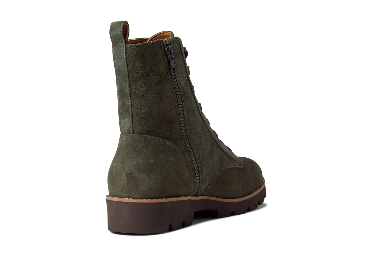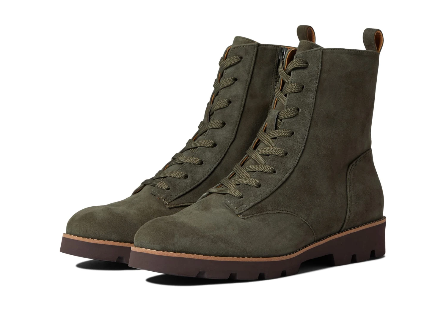 - The VIONIC® Lani combat-style boot features a patent leather upper, pull-on with lace-up and side zip closure, rounded-toe silhouette, and thick rubbed outsole.