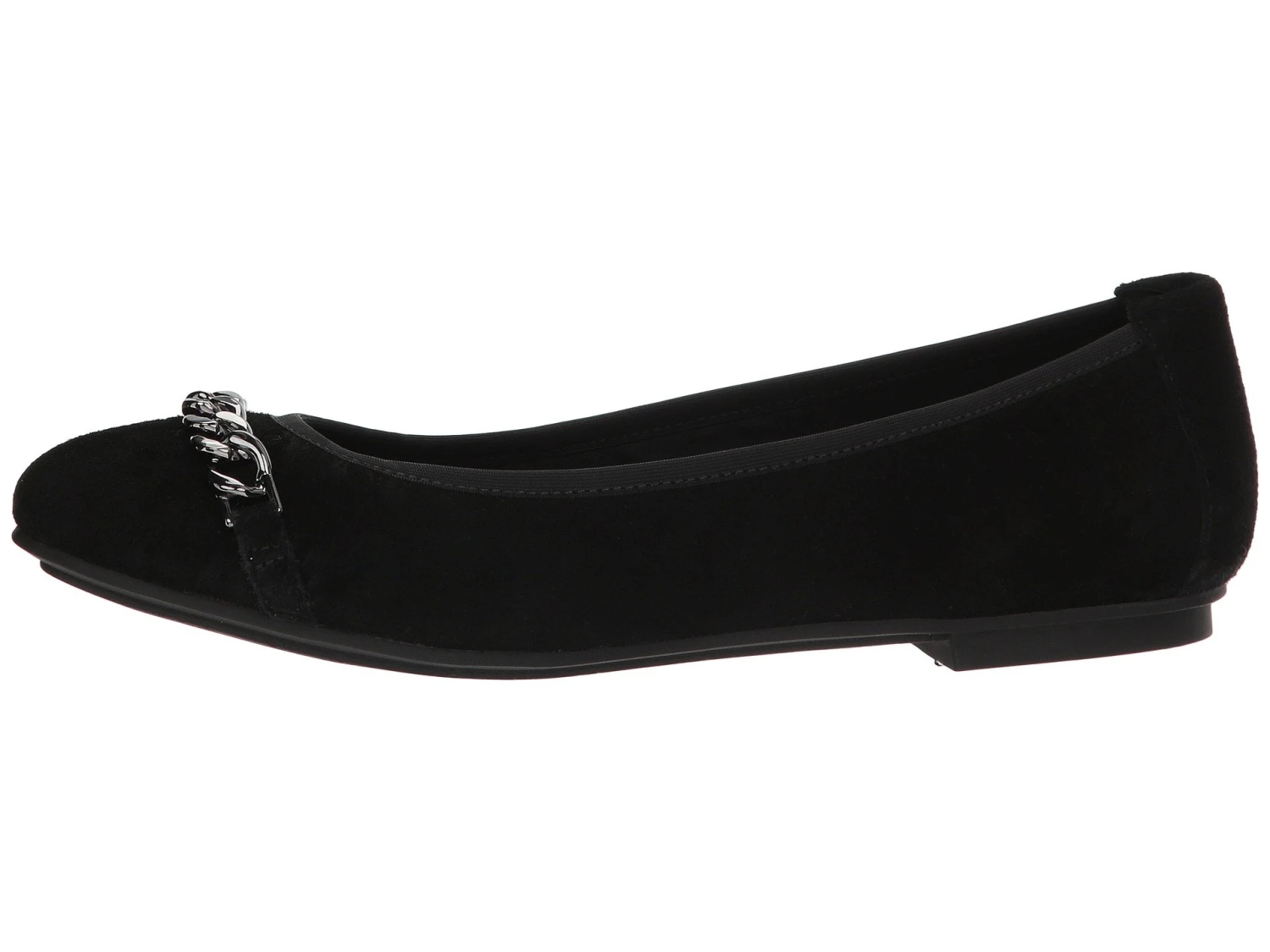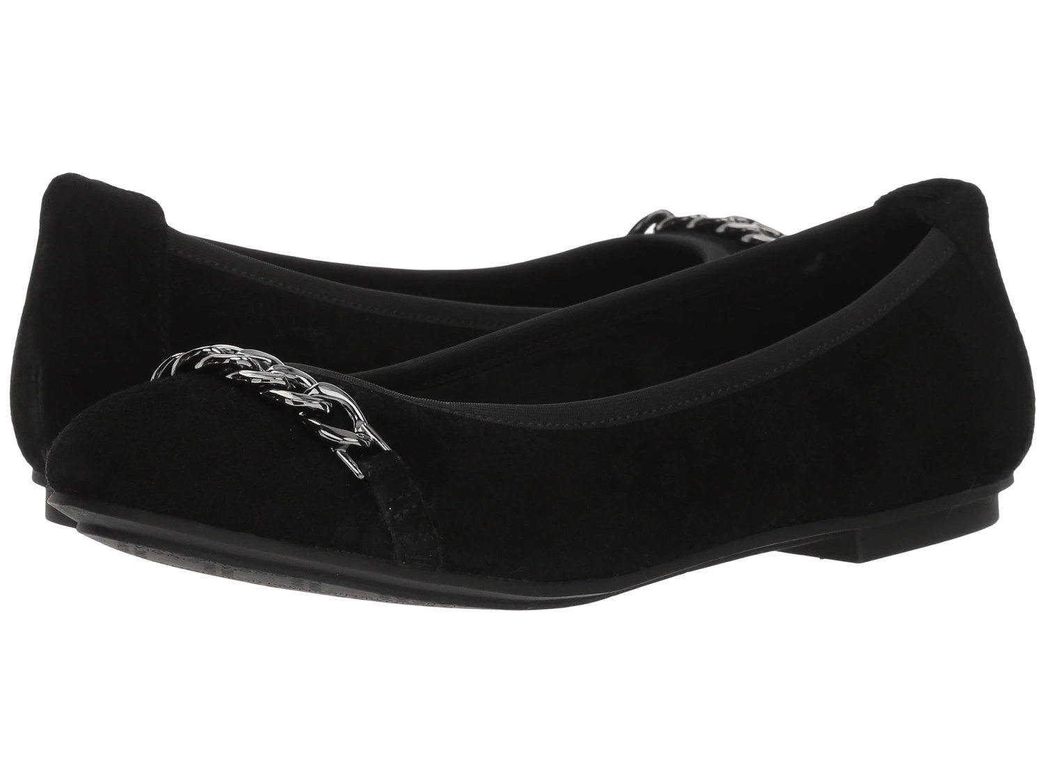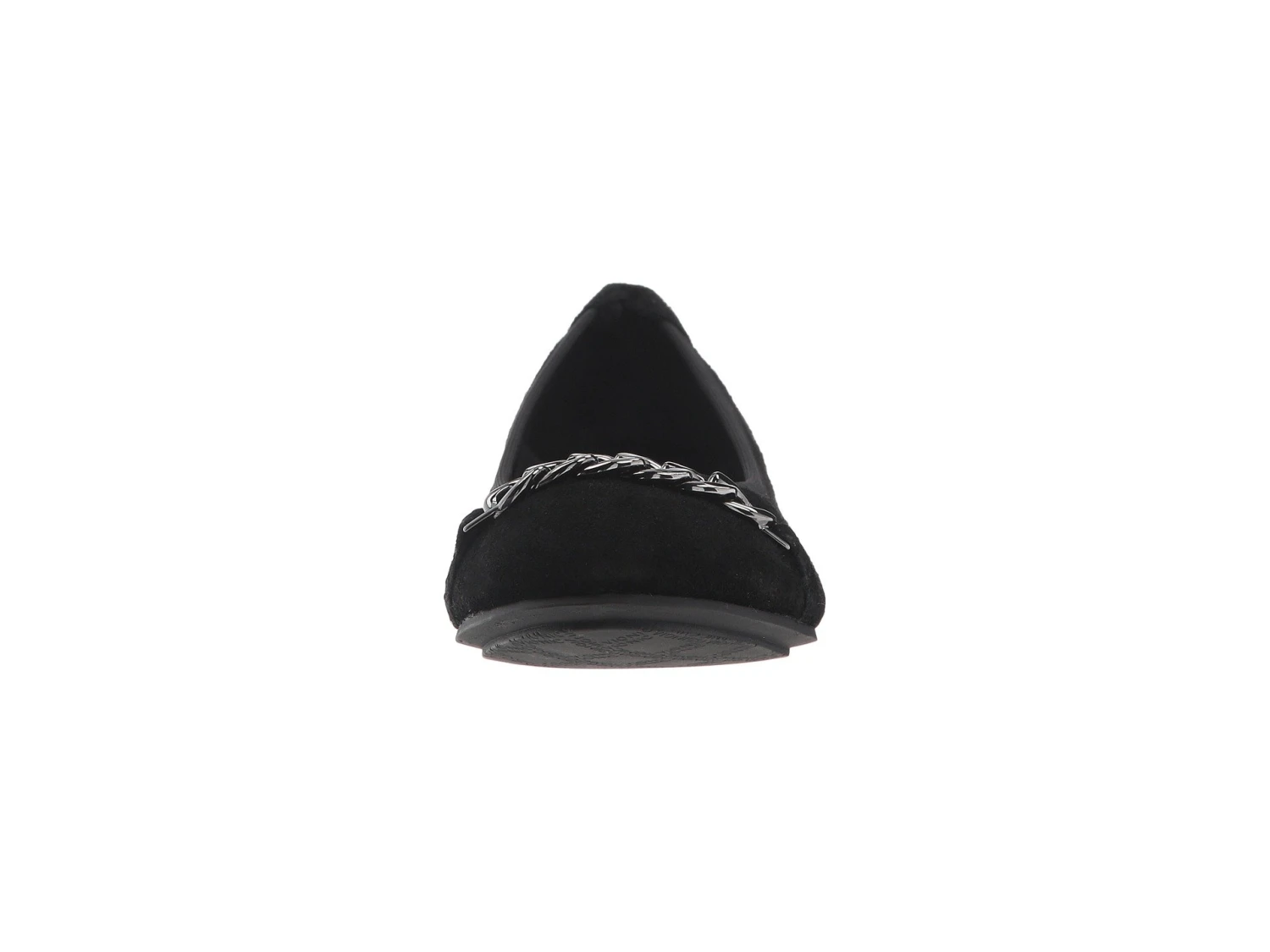 - Silver-tone chain at the vamp adds eye-catching appeal.